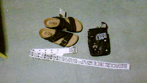 ベルトと小物入れとサンダル。